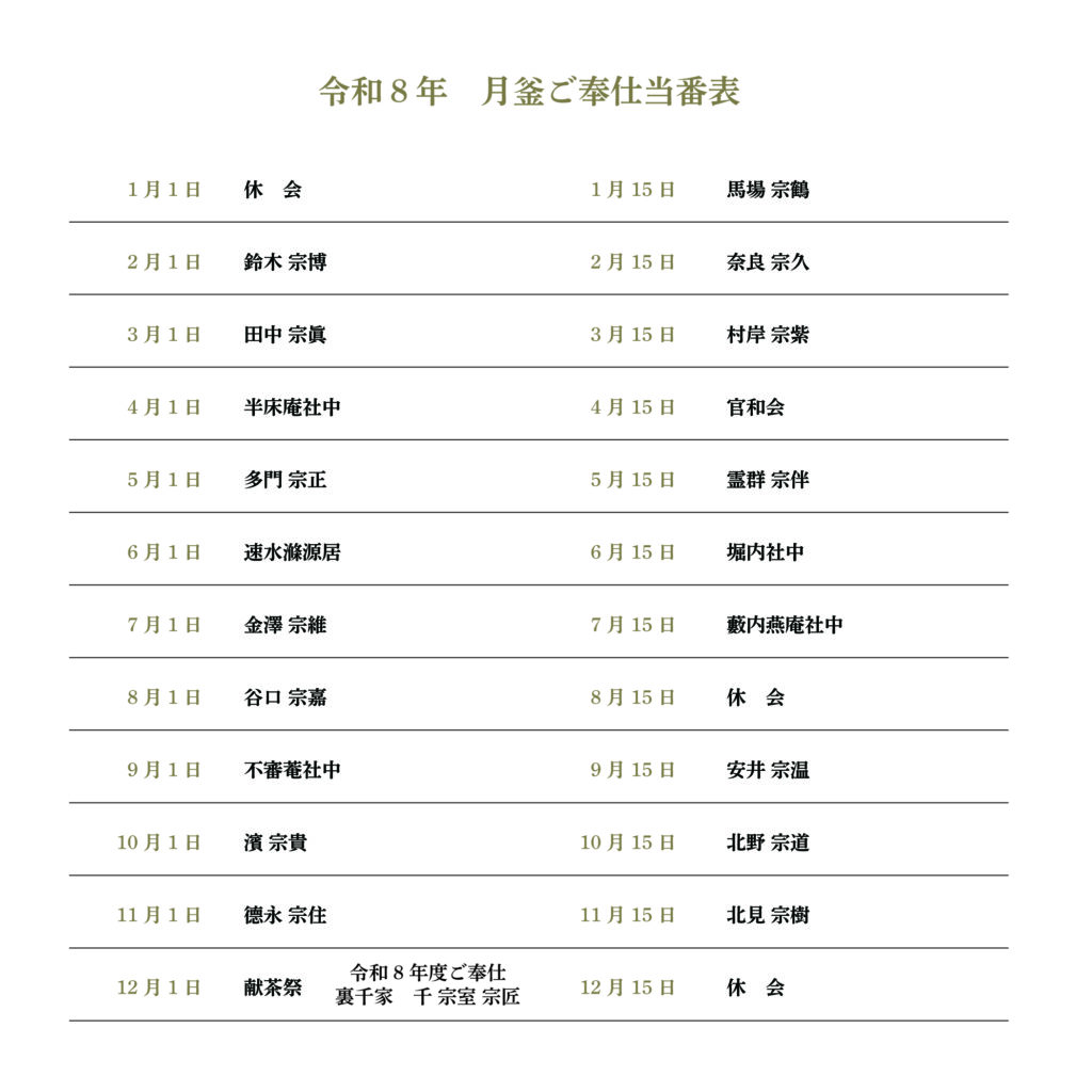 11月1日より令和8年の明月舎月釜の年会員受付を開始いたします。
